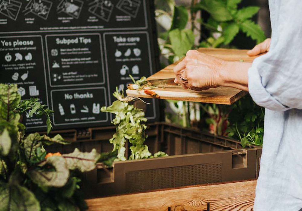 Subpod fertilises the soil around it and creates organic fertiliser (compost) from your food waste, all year round